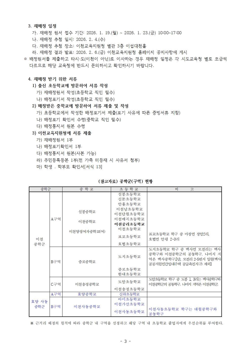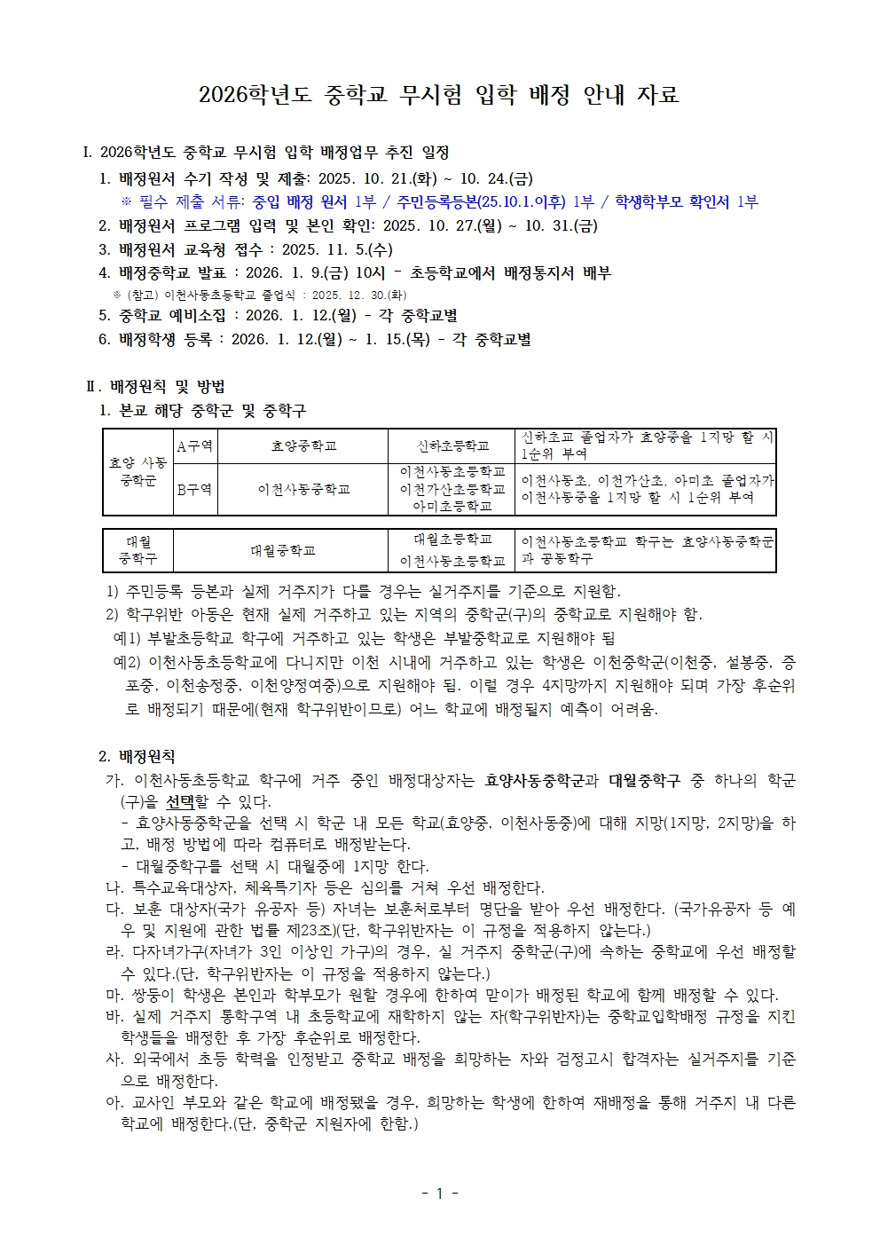 2026학년도 중학교 무시험 입학 배정 안내 자료